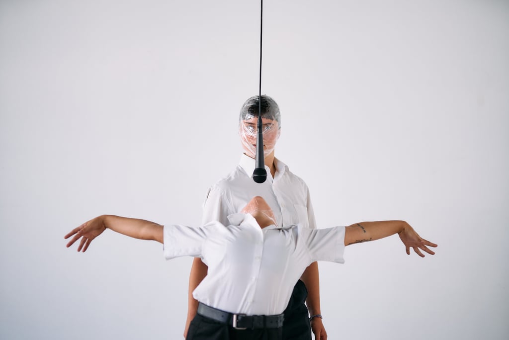 This piece shows two bodies who find themselves in a state of existence between animalism, mechanism and humanity. It unfolds as a satirical reality, where time has been miscalculated and communication has lost itself to deterioration.